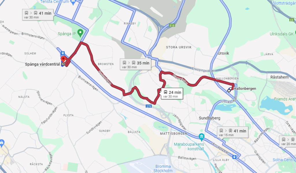Vårdcentral Hallonbergen via kollektivtrafik